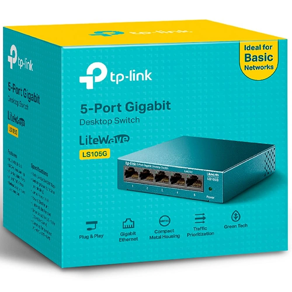 LiteWave 5-Port Gigabit Desktop Switch PORT: 5× Gigabit RJ45 Ports SPEC: Desktop Steel Case FEATURE: Plug and Play