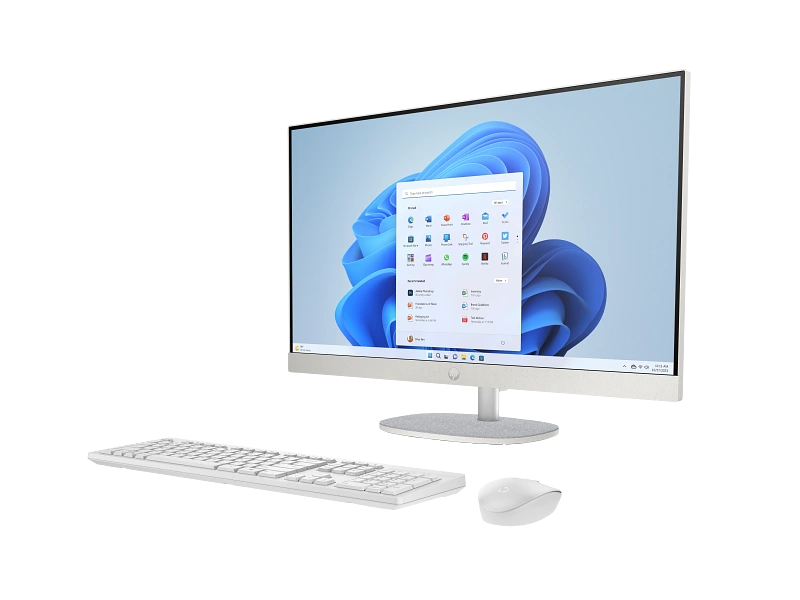 Моноблок поставляется в комплекте с беспроводной клавиатурой и мышью, что делает рабочее место аккуратным и удобным без лишних кабелей. Элегантный корпус в цвете Shell White подчёркивает современный дизайн и прекрасно вписывается в любой интерьер — от минималистичного рабочего кабинета до уютной гостиной.